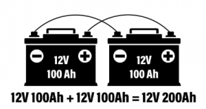 아래 예에는 12V 배터리 2 개가 있지만 암페어 시간이 200Ah로 증가하는 것을 볼 수 있습니다.